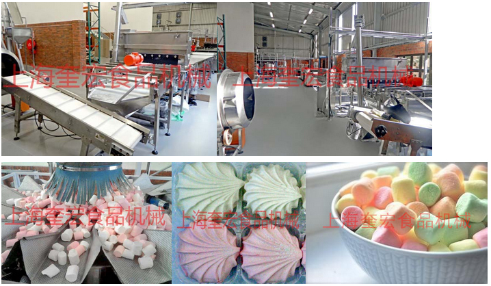連續式棉花糖生產線可以生產不同形狀和顏色的擠出成型棉花糖產品,也可生產果醬夾心的澆注成型棉花糖產品。